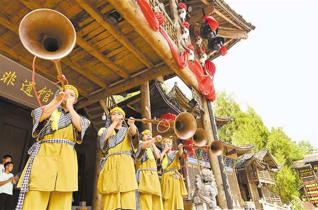 十月五日,酉阳县酉州古城景区推出土家摆手舞等非遗项目表演,让市民游客感受传统文化魅力。特约摄影 邱洪斌视觉重庆