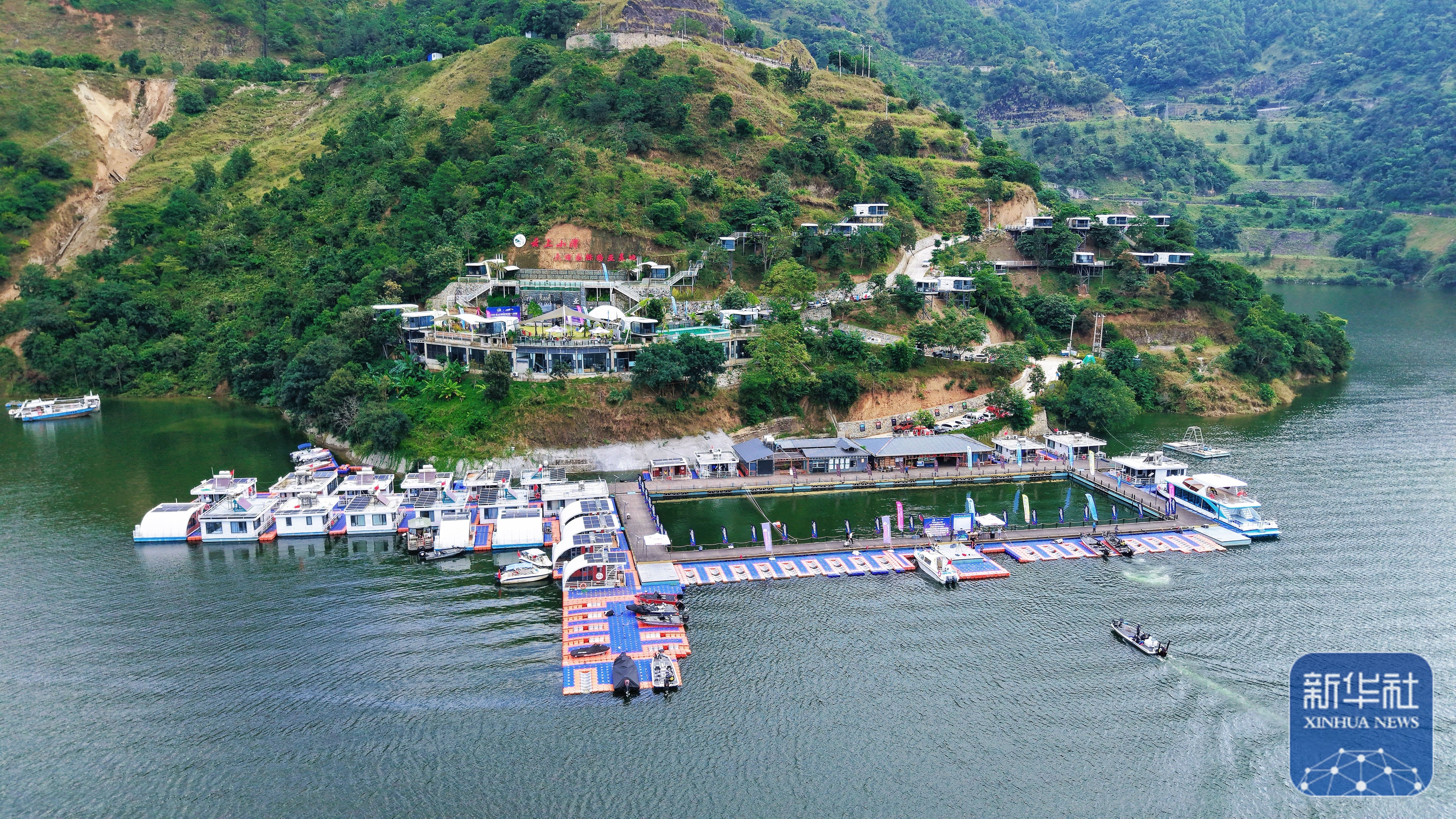 ↑ 这是10月31日拍摄的集水上钓棚、太空舱民宿、书屋、咖啡屋、餐厅等配套设施于一体的“云上小湾”休闲园(无人机照片)。