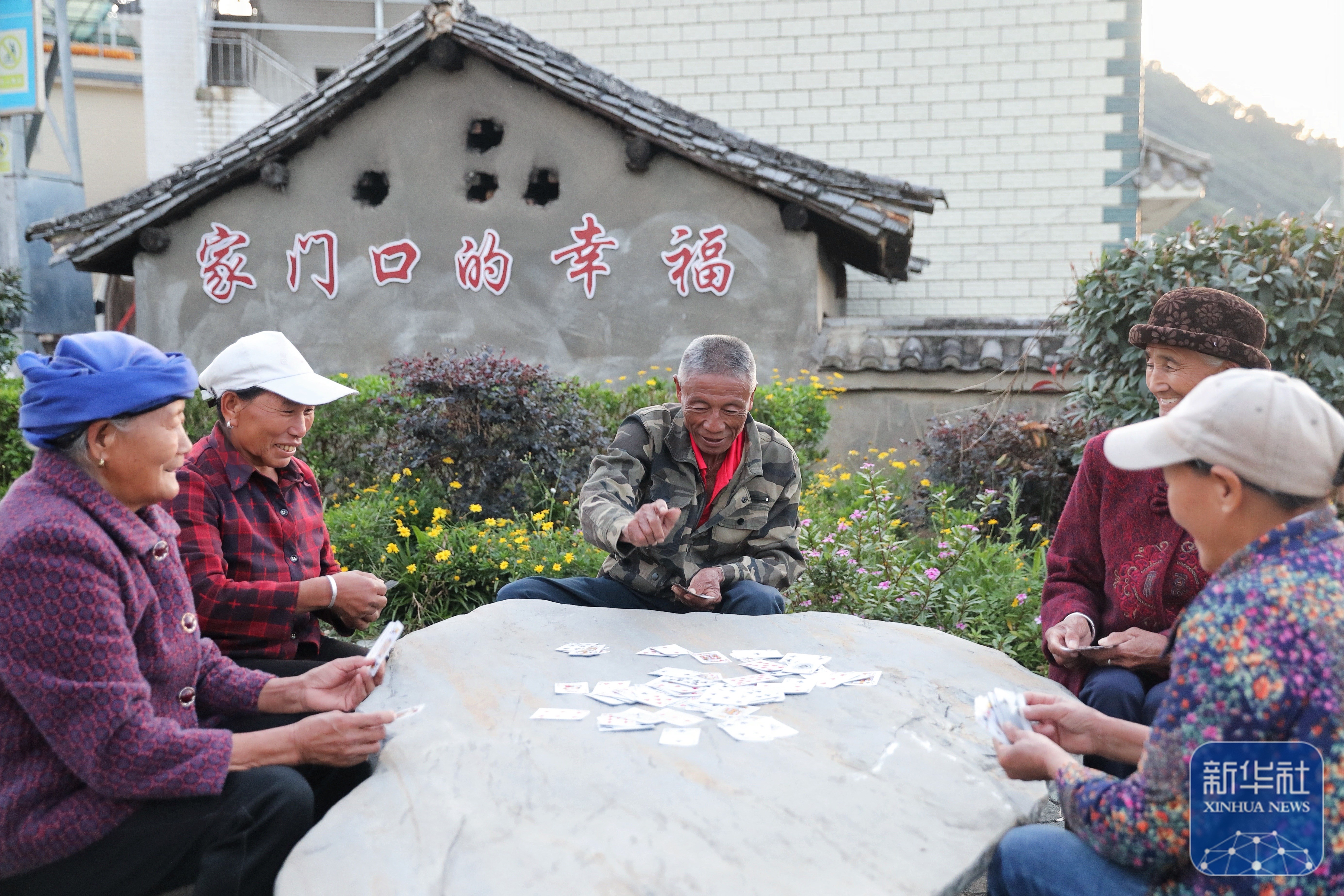 ↑ 10月30日,小湾东镇居民在新建的口袋公园内休闲。