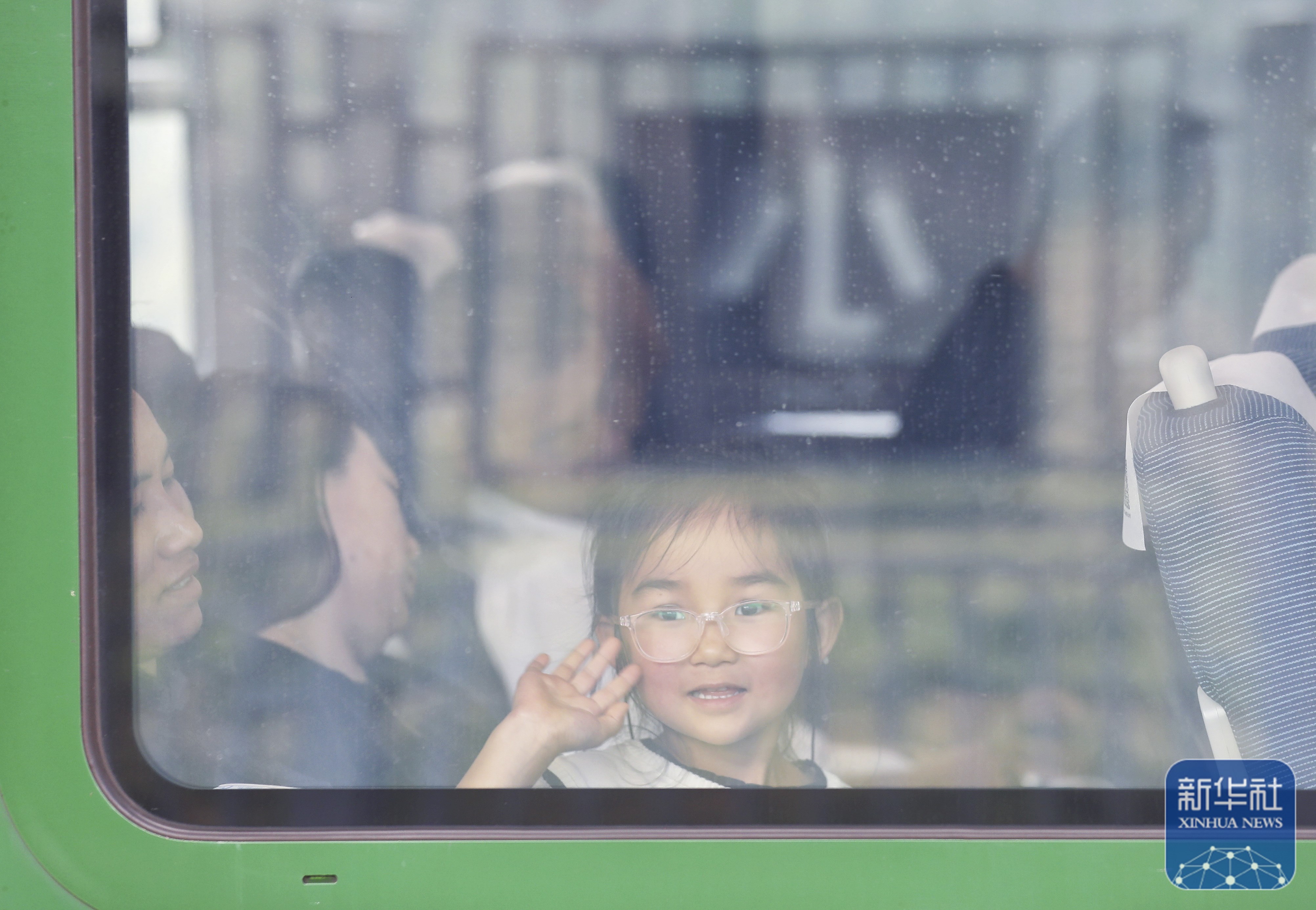 ↑ 10月31日,一名小女孩在小湾东站乘车。