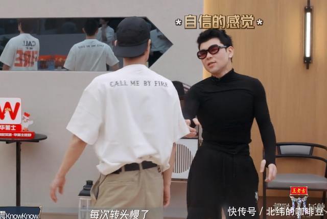 紧接着,哥哥们开始学习《唤》的舞台,丁震的学习速度是比较慢的,但哥哥们都在努力帮助他,而他也快速地进入状态。当《唤》组可以跟着音乐跳舞的时候,丁震突然对陈小春说:“每次转头慢了”,听到丁震的话,陈小春立即问:我?我慢了?哪里?