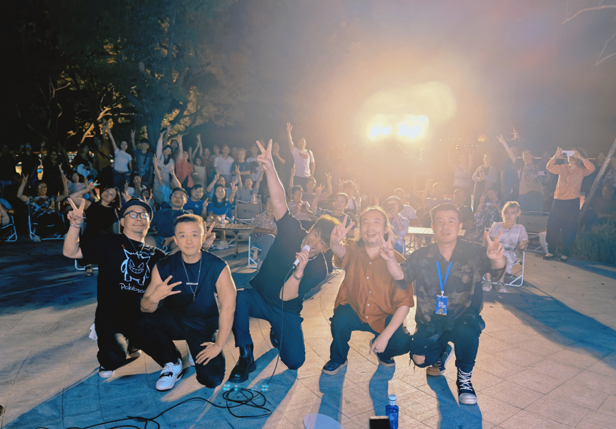 随着夜幕降临,紧邻美食节会场的艺术街角舞台也响起了歌声,登台的是答案商店乐队,江堤变身为随性摇摆的音乐现场。乐队主唱辛迪说,最近乐队已经在宝山滨江演出了3场,“和平时在livehouse表演的感觉不同,这里离观众更近,互动感更强。”作为土生土长的宝山人,辛迪对宝山滨江的变化感受颇深,“曾经这里很‘野’,现在是一片繁华,希望通过我们的歌声让更多人爱上宝山、爱上滨江。”